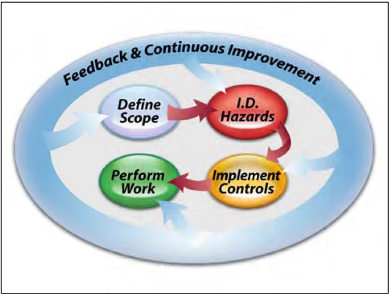 Organizations develop policies, procedures, training etc. to provide a management system envelope of safety within which they want their people to work. This safety envelope is developed through the ISMS “Define the Scope of Work, Analyze the Hazards, and Develop and Implement Hazard Controls” and can be referred to as “work-as-planned.” The way work is actually accomplished under ISMS “Perform Work within Controls,” referred to as “work-as-done”, can be compared to the work-as-planned. Every organization’s goal is to have “work-as-done” to equal work-as-planned (i.e., actual work performed within the established safety envelope – left side of Figure 1-11).