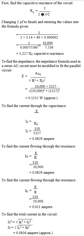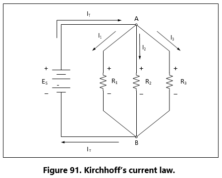 If the open resistor shown in Figure 174 was not visually apparent, the circuit might appear to be functioning properly, because current would continue to flow in the other two branches of the circuit. To determine that the circuit is not operating properly, a determination must be made as to how the circuit should behave when working properly. First, the total resistance, total current, and the branch currents of the circuit should be calculated as if there were no open in the circuit. In this case, the total resistance can be simply determined by: